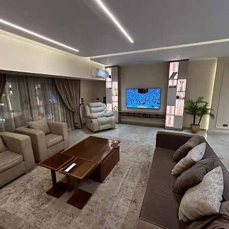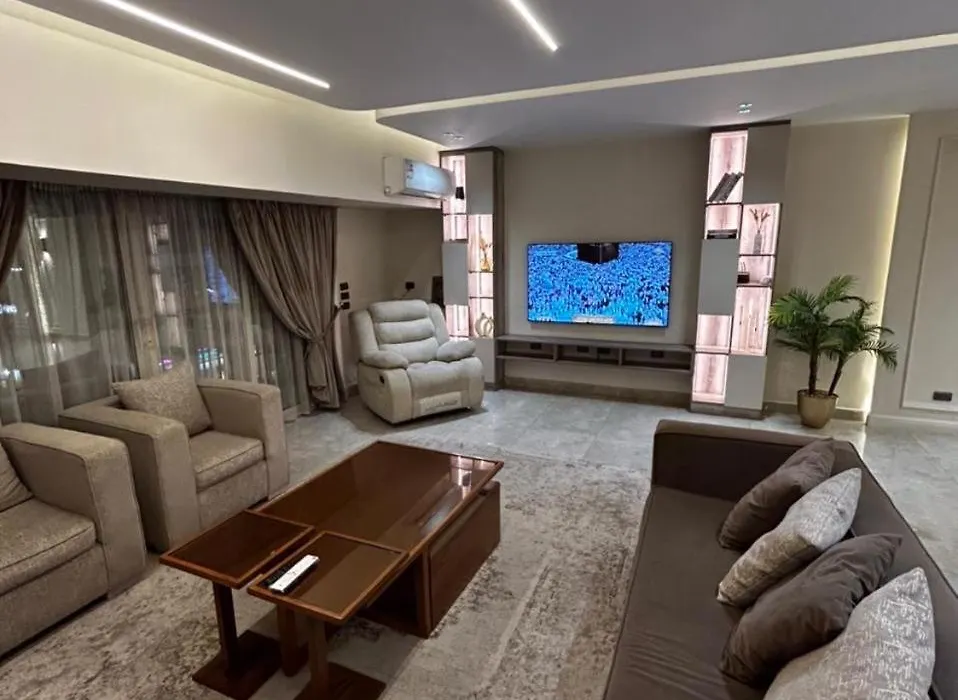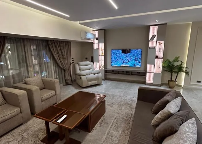 Elegant Three-Bedroom Apartment In Mohandessin Cairo is located 6 km from El Giza train station and a 6-minute walk from Mustafa Mahmoud Sq. Wi-Fi and free private parking are among the essentials at guests' disposal.